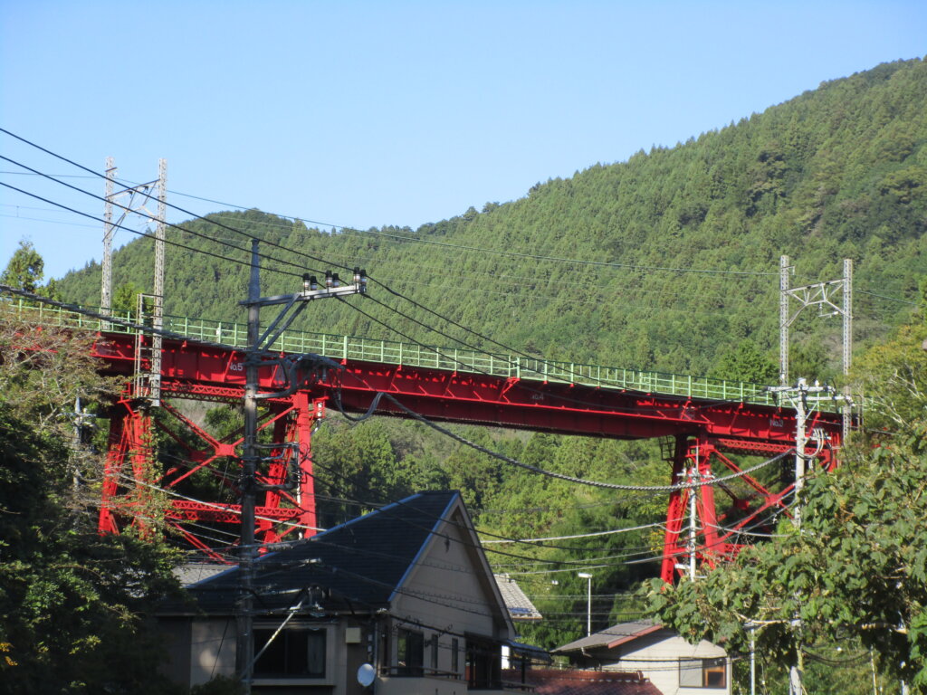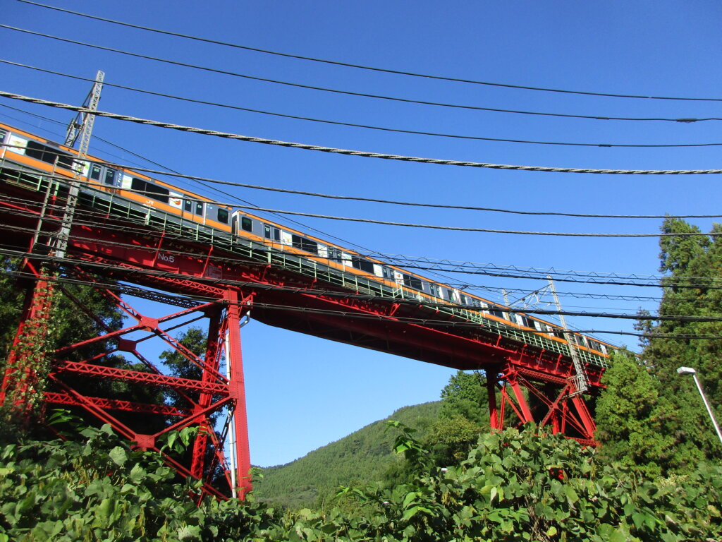 二俣尾駅~御嶽駅間の二俣尾駅と隣の軍畑駅の間に平溝川が流れていて、深い谷になっている。この谷を渡るために奥澤橋梁が架けられた。電車に乗って通過するときは下が見えないので誰も気づきませんが、この橋脚が日本でも数少ない貴重なトレッスル橋です。築96年になりますが、今も現役で青梅線の線路を支えています。