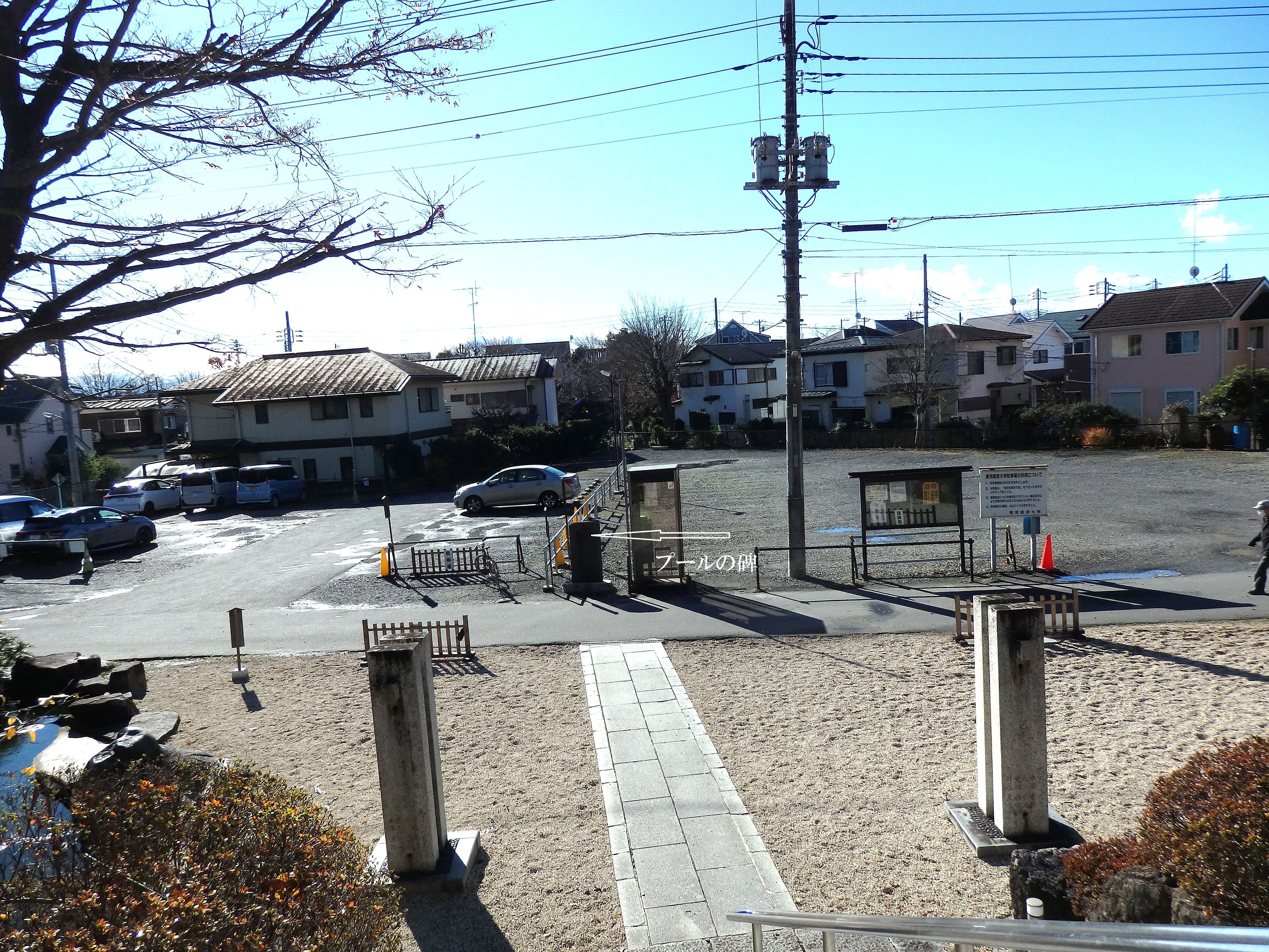 昭和48年(1973)当時、小金井市が市民プールとして借り上げる、また、釣り堀案があったが協議が整わず、昭和52年(1977)10月神社の整備完成とともに駐車場として生まれ変わった。