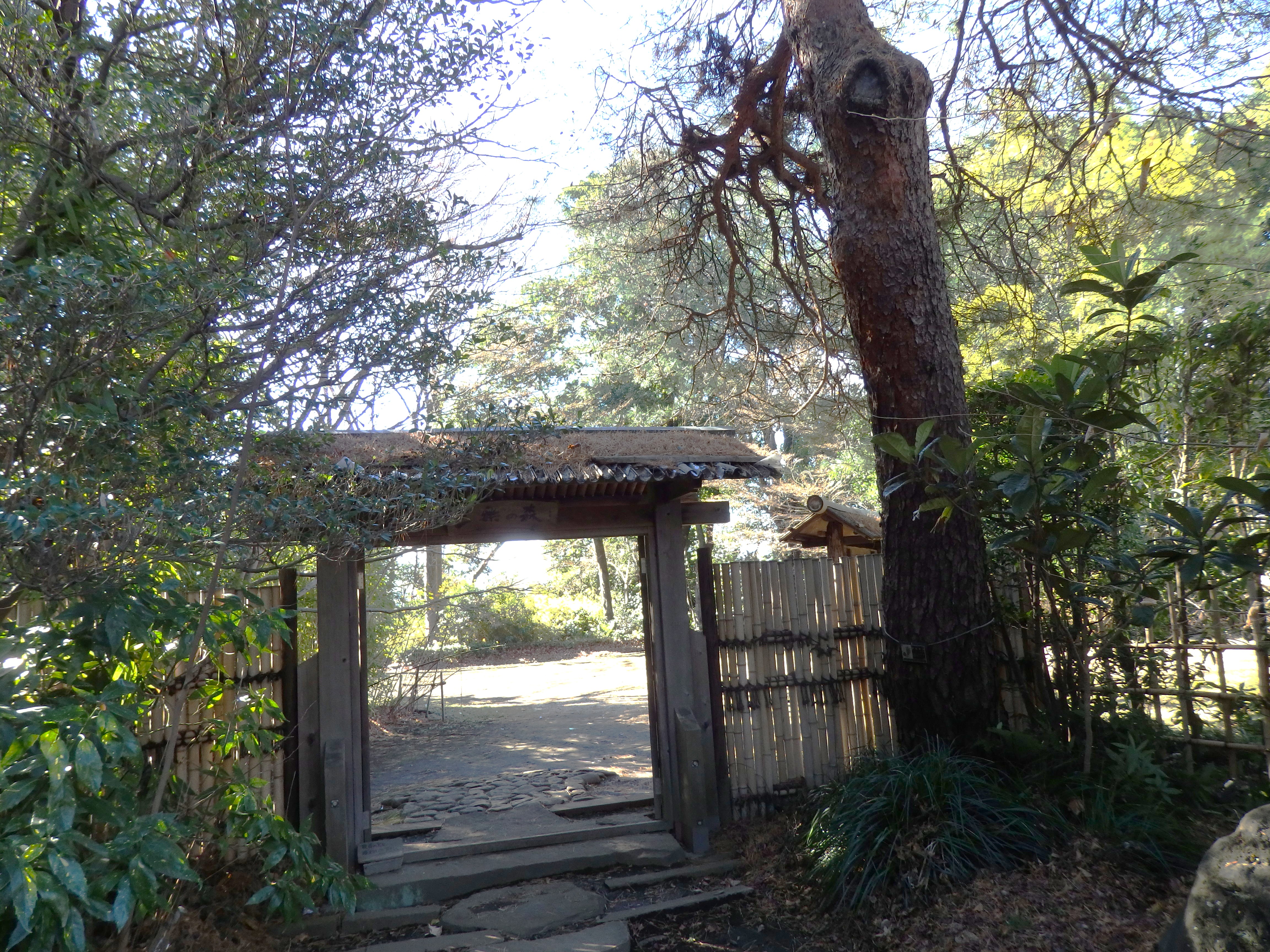 ハケ上に別荘跡を開放した「三楽の森公共緑地」があるとのことなので、神社からの急坂をゆっくと歩く、登りつめると突き当りに小金井第四小学校がある、ここを右に折れて60mほどでこの森に着く。三楽集会所の門の奥が入口となっている。