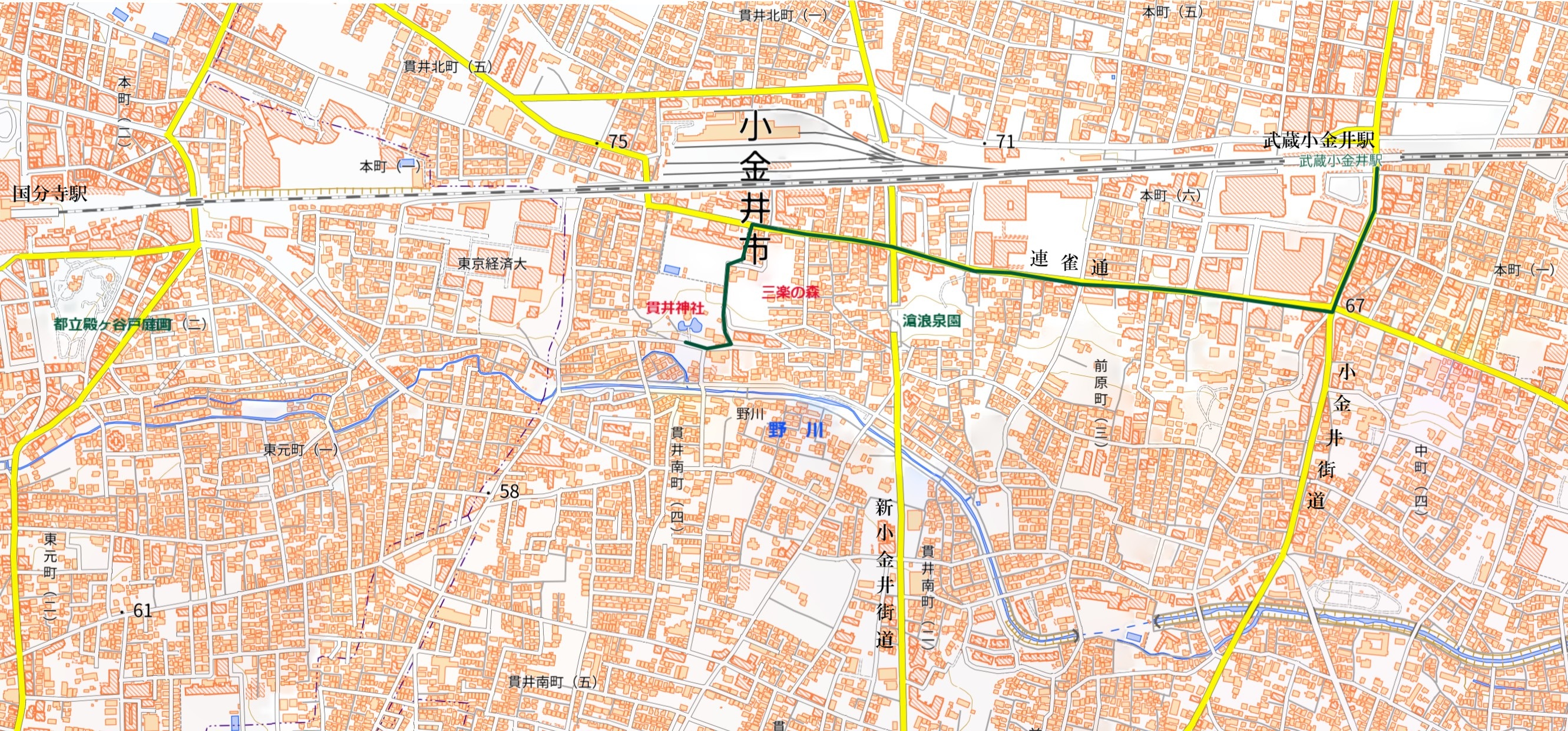 小金井市が借り受け平成4年(1992)5月に「三楽の森公共緑地」として開園(約6,040㎡)した。遊具などなにもないところがいい、中央の緩やかな斜面の広場や高木そしてハケ上から南方の眺め、風が抜けて夏はきっと涼しかったに違いない。築年が先ほどのプールの建設と近いので、ハケ下のプールで遊ぶ喧噪が耳に入っただろうか。いや、泳いだかも?