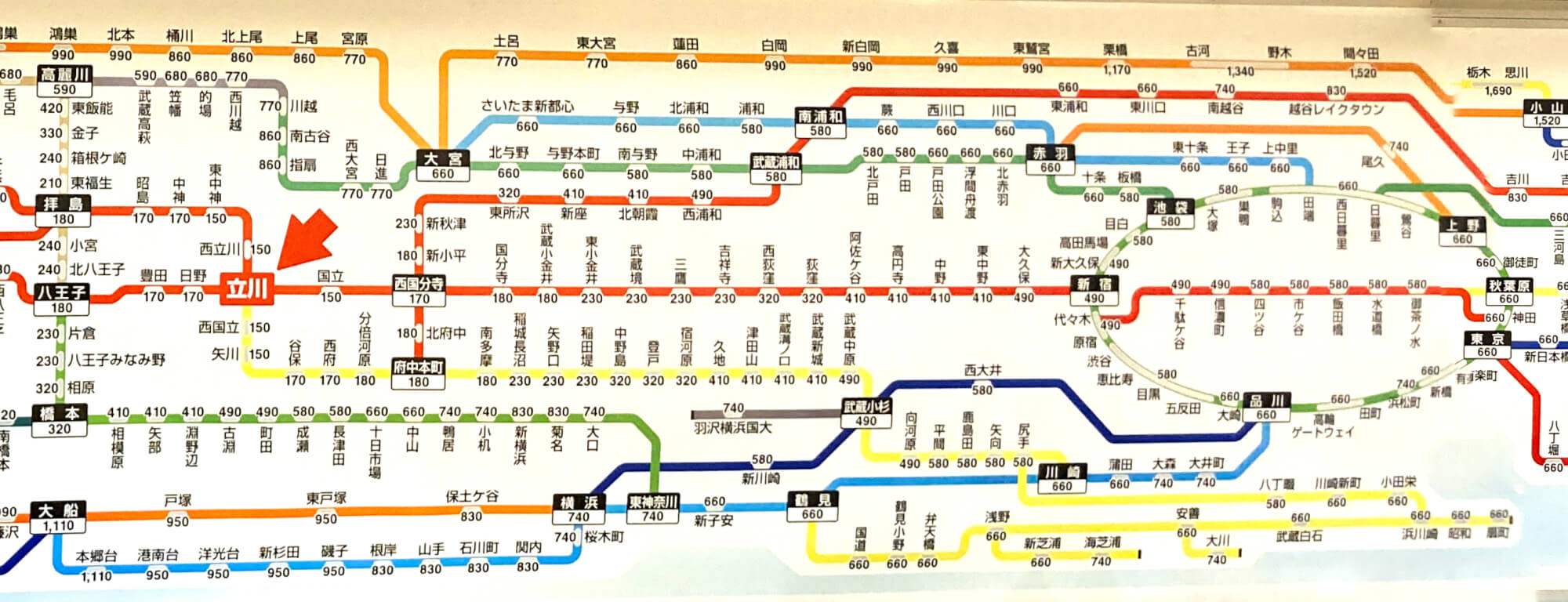 | 立川〜東京 | ¥660 | ¥720 | ¥60 | 9.1% |