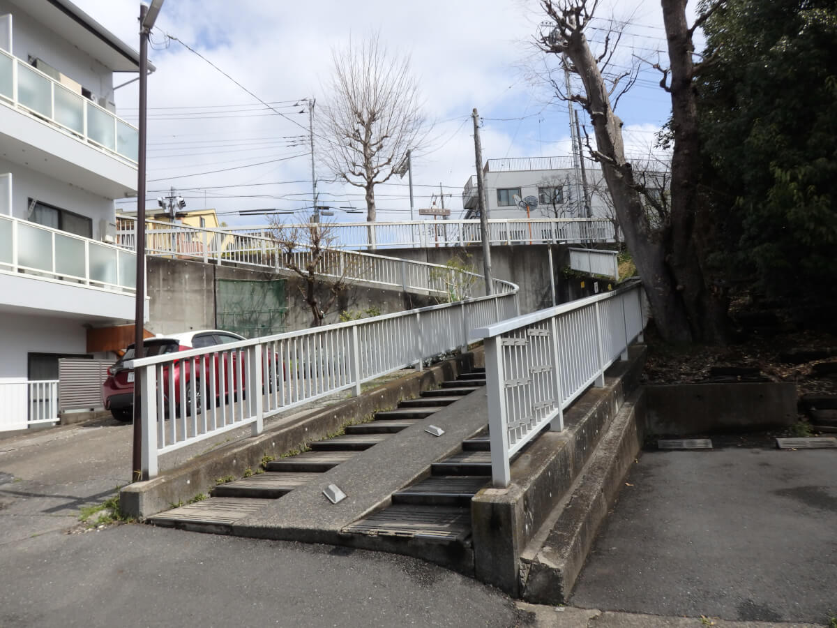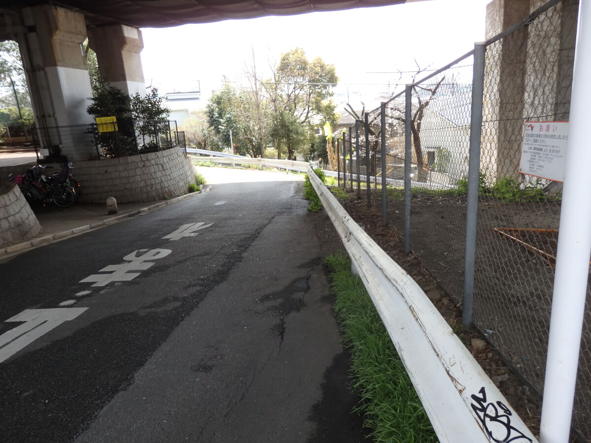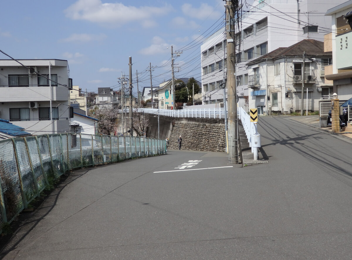 学校から先は途切れているので、階段を「凸凹児童公園」へ下りる、幼子を遊ばせる格好の広場となっている。崖下の緑地が見られるなど家族でのんびり過ごすにはいい場所だ。また、長瀞川との合流部にもなっている。