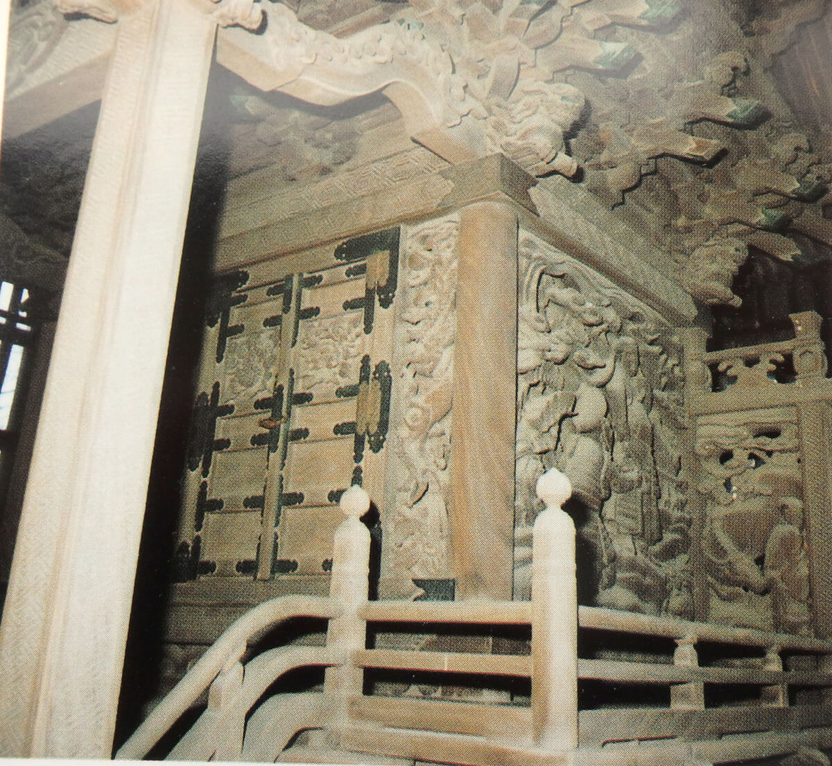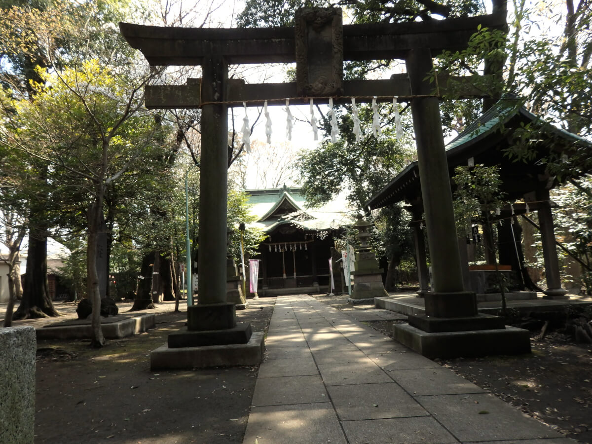 上石原村の鎮守若宮八幡神社は、八幡坂(番号④)を上がってハケ上のある。近藤勇の生家(宮川家)も氏子であり、近藤勇とも縁がある神社だ。本殿は調布市の建造物有形文化財指定第1号となっている。幣束収納箱の蓋裏に文化4年(1807)棟梁入間郡中藤村の杉田石見頭政永・同喜兵衛と墨書きがあり再建年代などが分かった。精緻な彫刻が一面に施されている。(覆堂があり中が見えない)