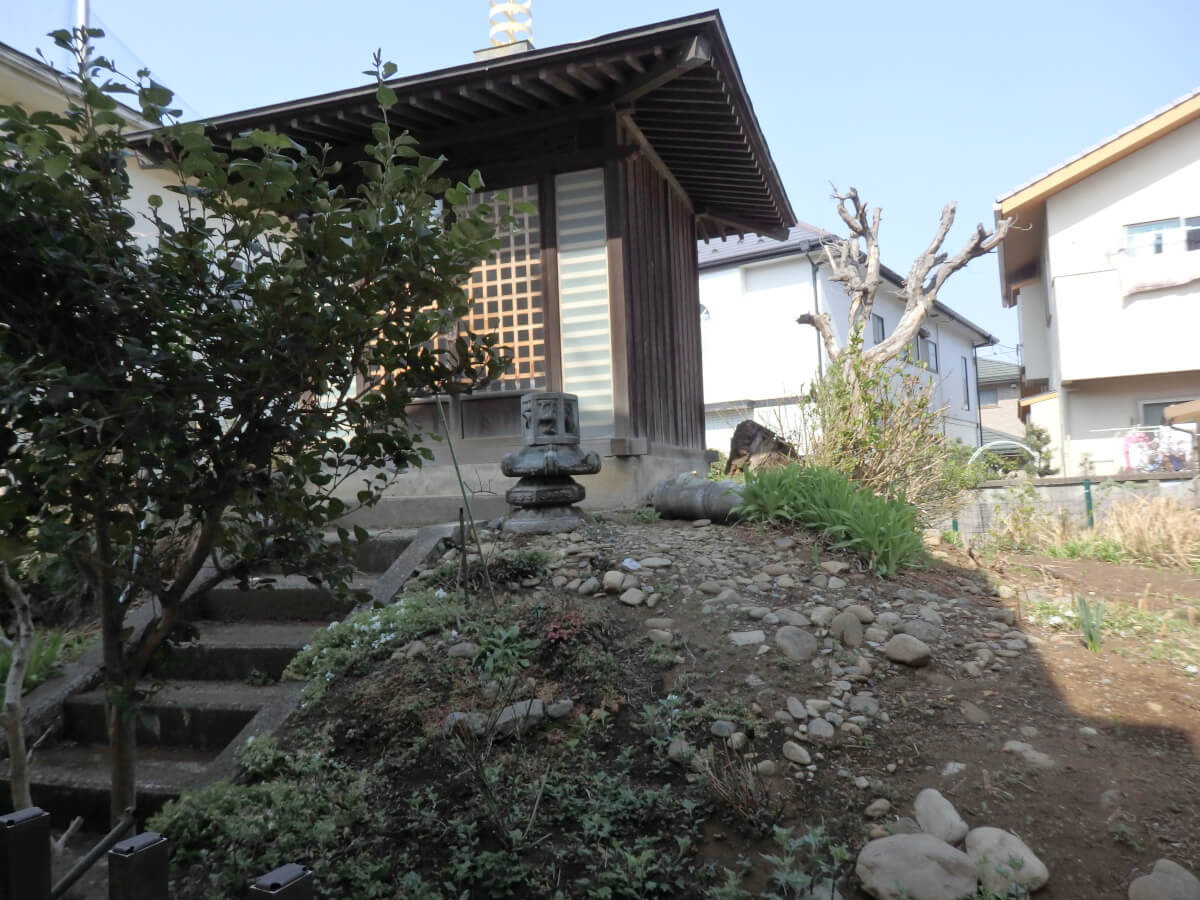 京王線飛田給駅から南へ、突き当たりの品川通りを右へ府中市との市境まで行く。調布市がハケ道として調査報告した西端から歩き始める。階段(地図の番号①)を下り、200mほど行きハケ上への階段を上る。ハケ道はあまり長くないものの、この辺りは上石原桜塚と呼ばれ、13基の古墳の存在が考えられています。市内でも墳丘が残る数少ない古墳の桜塚1号墳があるというので行ってみた。私有地に囲まれた敷地内にお堂が上にある小山を覗き見た写真がこれです。(郷土博物館に問い合わせ間違いなかった)また、7世紀中ごろの横穴式石室の基底部が発見された桜塚10号墳を記念して、石碑が社宅入口にあったので訪ねてみた。古のひとは、高台にあり見通しのよい場所を選んだのだろうか。