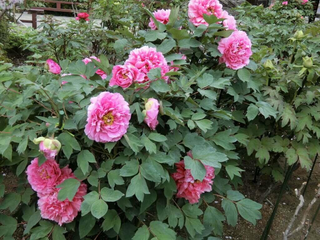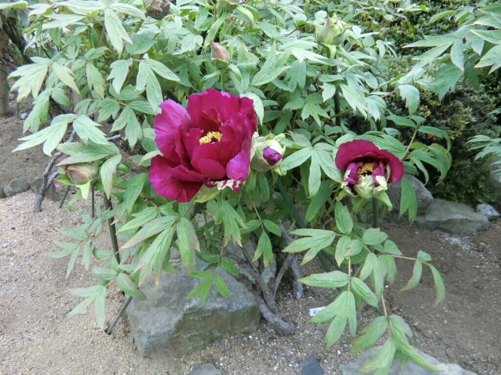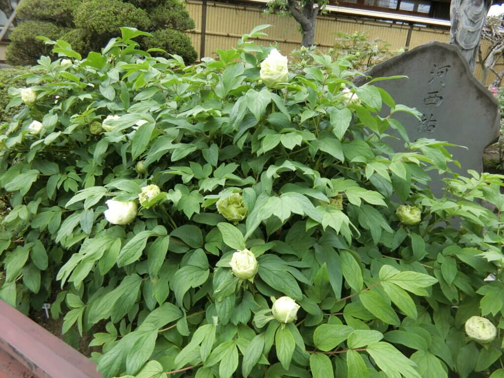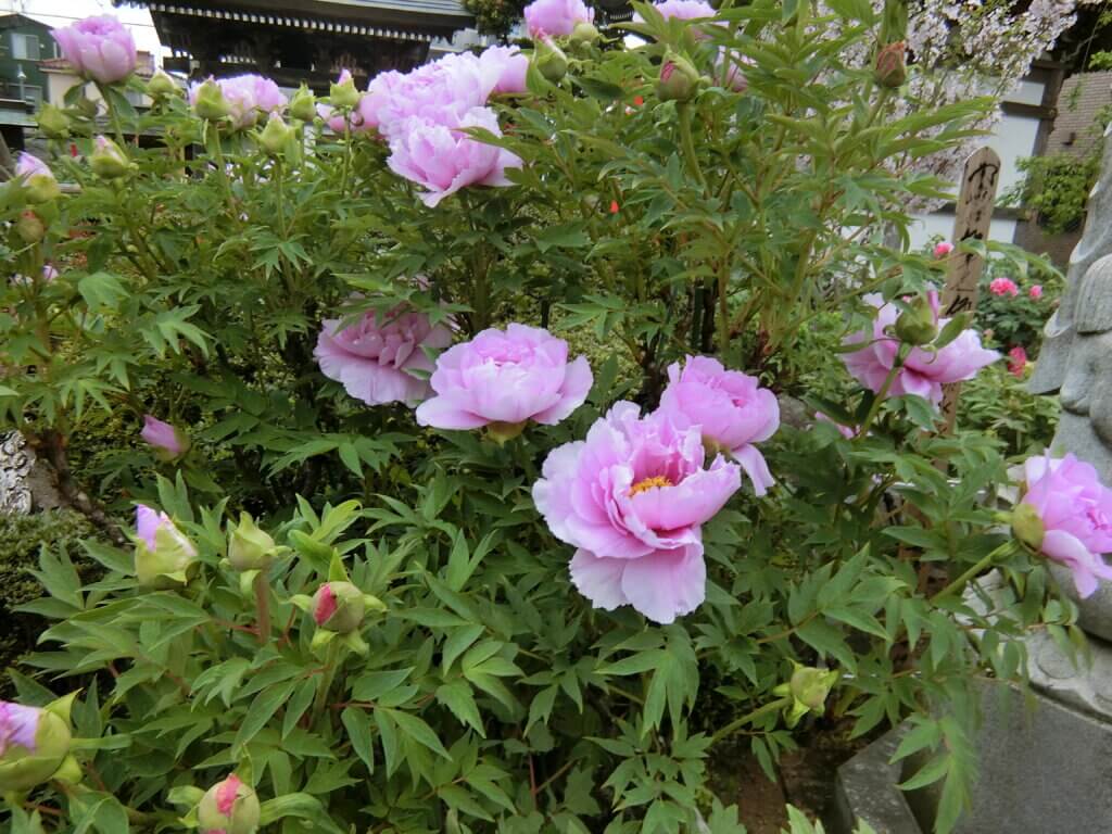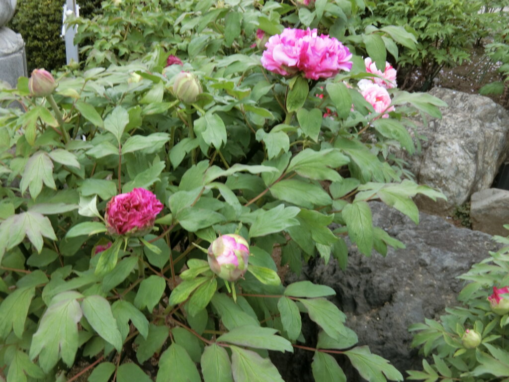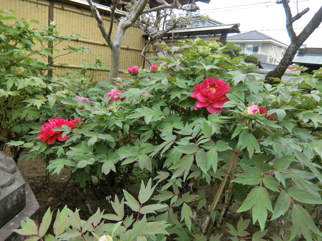 境内に咲くボタンの品種