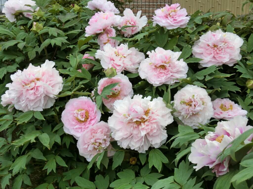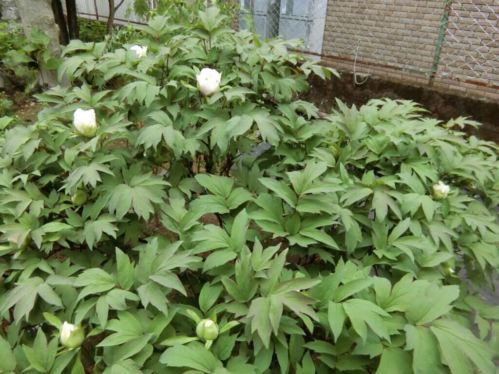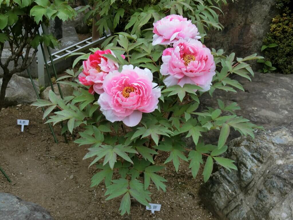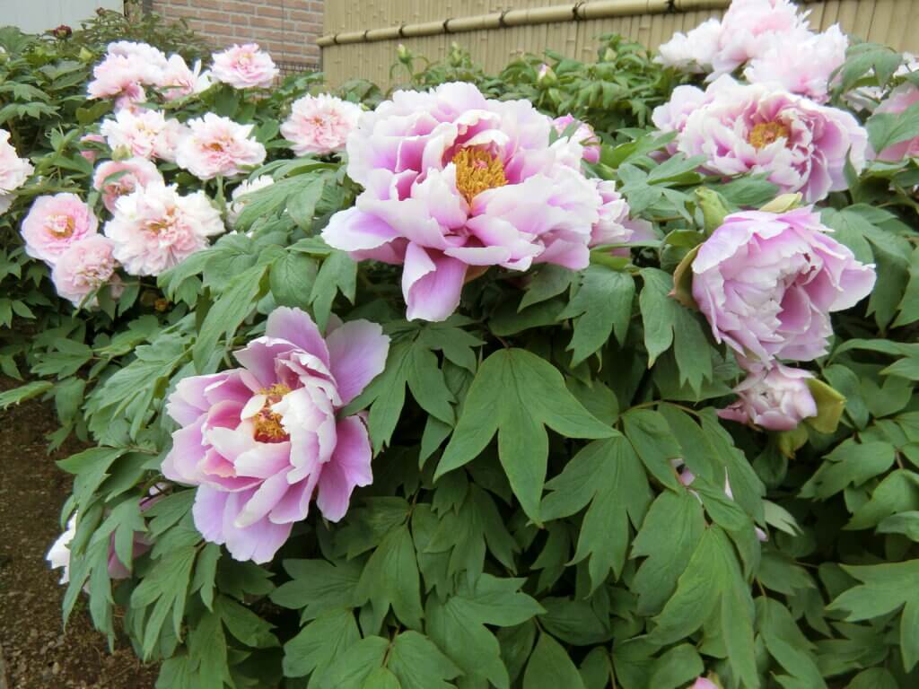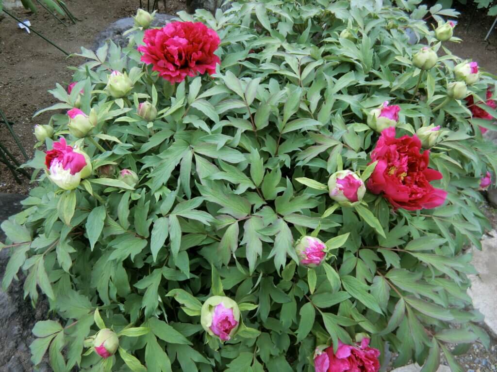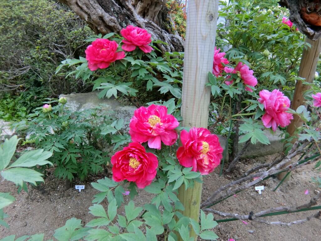 境内に咲くボタンの品種