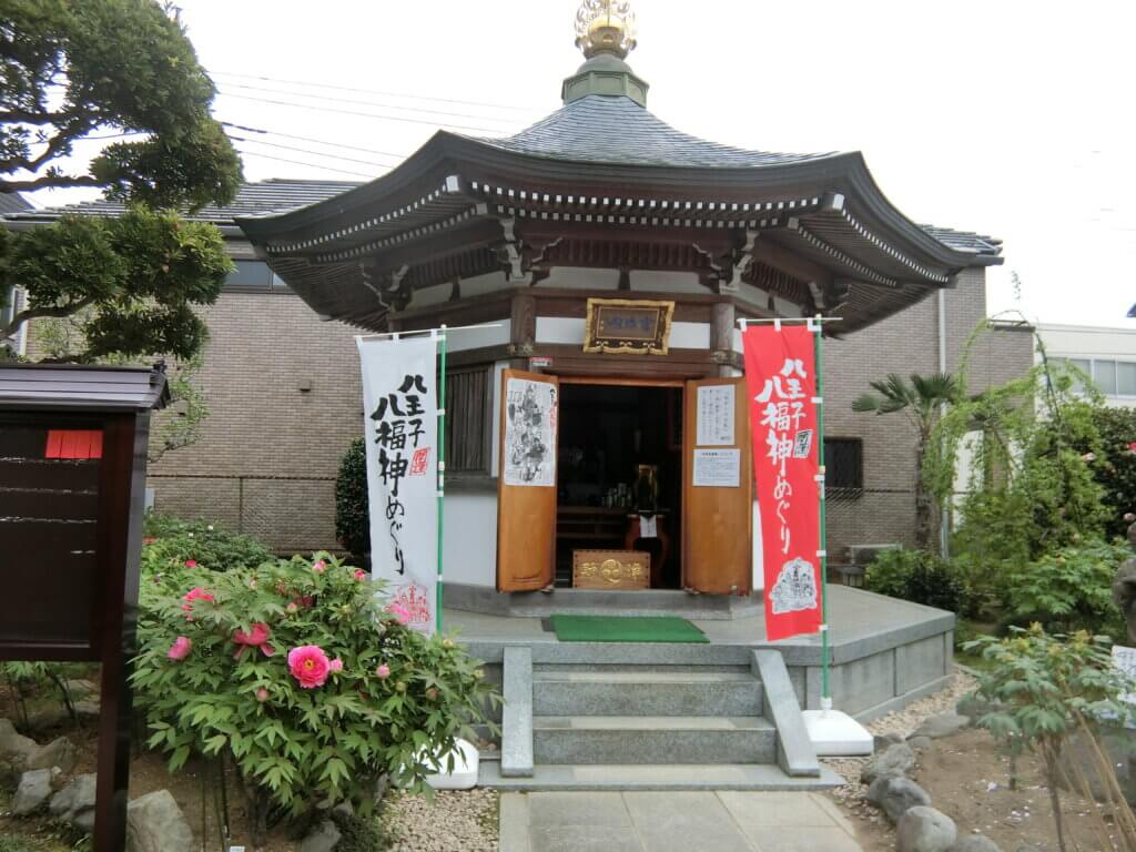 所在地の千人町は江戸時代、八王子千人頭と千人同心の拝領屋敷地であったことが町名となりました。「宗格院」は曹洞宗のお寺で、山号を良介山といいます。文禄2年(1593)に价洲良天(かいしゅうりょうてん)和尚により開山されました。JR西八王子駅北口から甲州街道に出ると「馬場横丁」と記された碑が立っています。この碑が立つ所から南浅川方面に向かう「宗格院」までの道を「馬場横丁」といいます。江戸時代千人頭の馬術訓練の為に拝領した馬場が宗格院の北側に設けられていたところから名付けられました。境内には千人同心組頭の松本斗機蔵の墓(都指定文化財・旧跡)があり、浅川治水の為に築かれた「岩見土手」の一部が残っています。また、「宗格院」境内の「寶寿閣」には八王子八福神の一つ・寿老尊が祀られています。