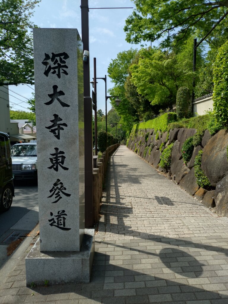 「仙川二丁目」交差点から参詣道に入ります。かつてはここに参詣道の道標があったそうですが、現在は深大寺境内に移設されているそうです。