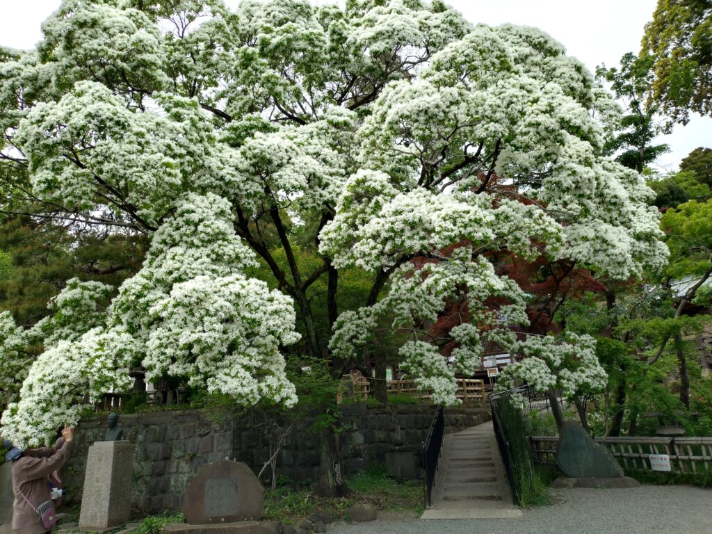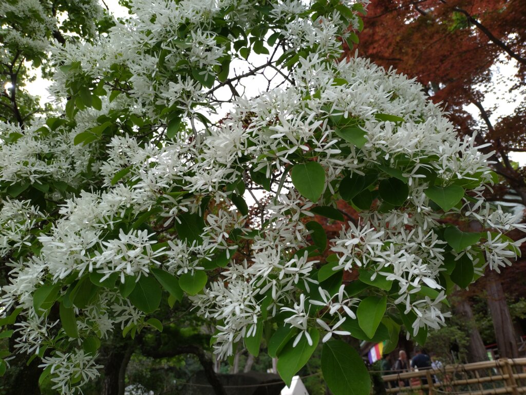 そして、何と!境内のなんじゃもんじゃの木が満開でした。満開はゴールデンウィークの頃・・と言われているのでちょっと早い感じです。