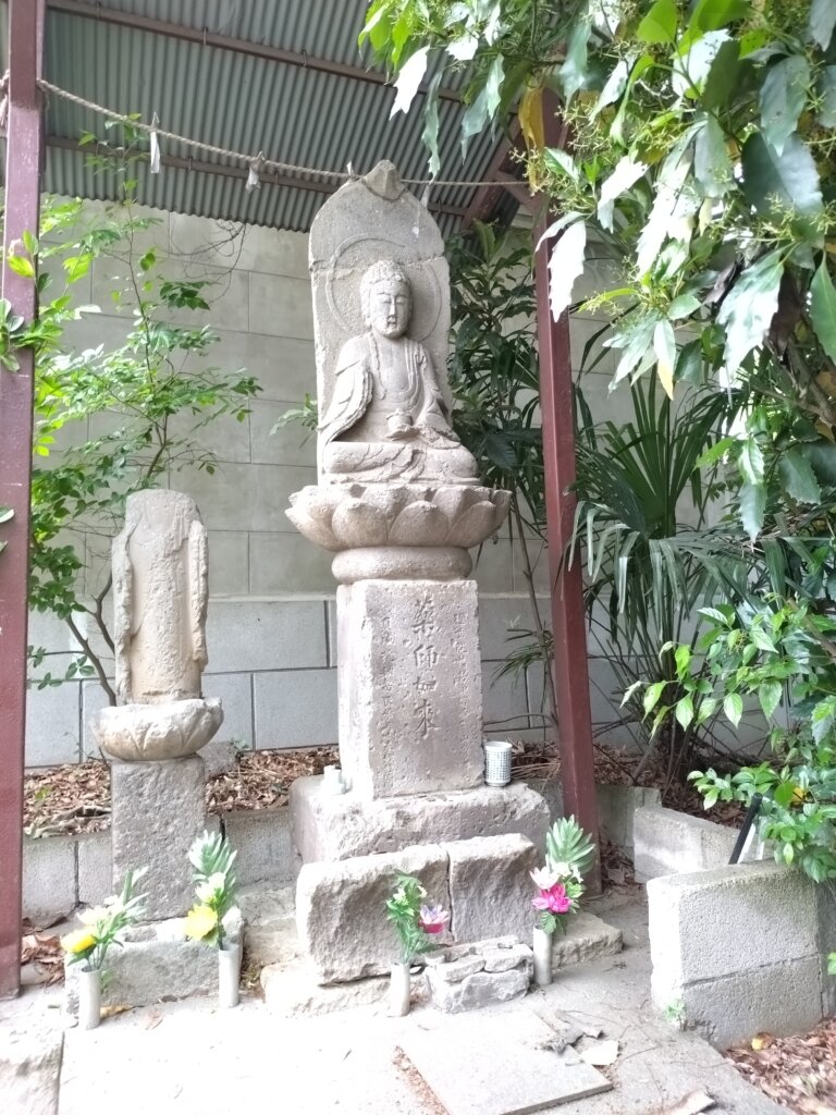 絵図の通り、右手の土蔵の前に薬師如来があり、昔の様子が偲ばれます。
