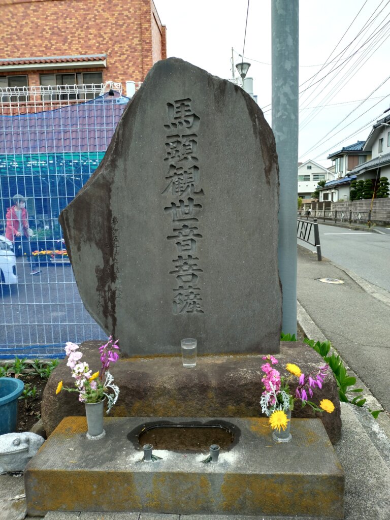 道の拡幅工事の際に馬の骨が出たことから、死馬捨場があったと考えられています。供養の馬頭観音は、その時に造立されたもので、昭和54年(1979)5月と刻まれています。
