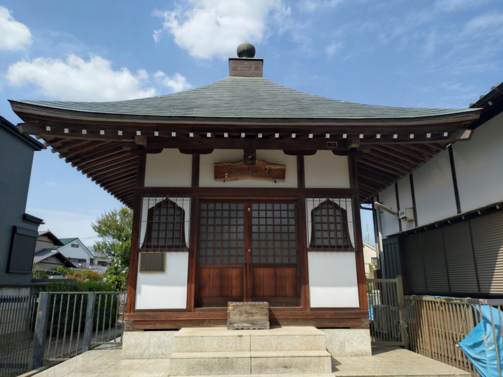 絵堂通りに戻ると、右手にあるのは法生院です。敷地内に地域の集会所を併設しています。さらに進むと左手は深い谷で、東京都立農業高校神代農業高等学校神代農場になっています。