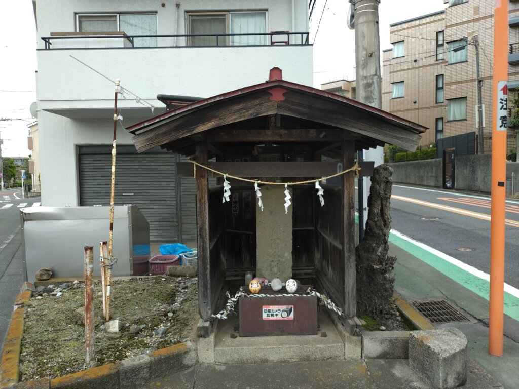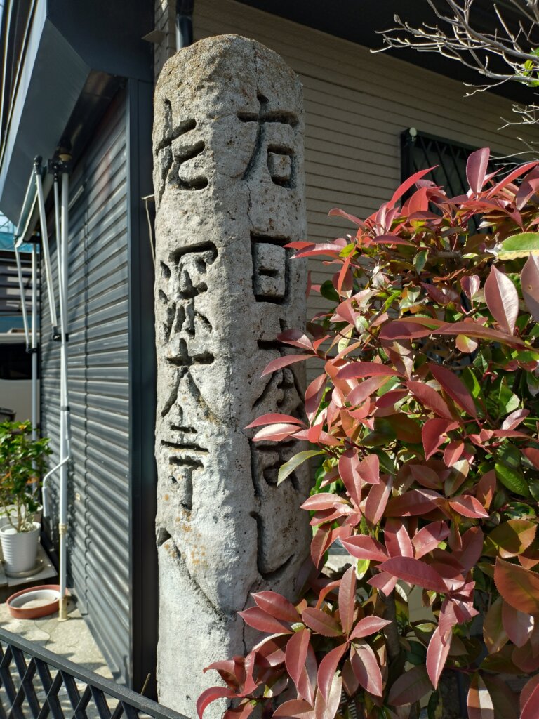 「施主 富沢木代治  施工 橋本石材」とありますが、富沢商店の前にあるので、当時の店主によるものかもしれません。ここからしばらく、「神代植物公園通り」を歩きます。