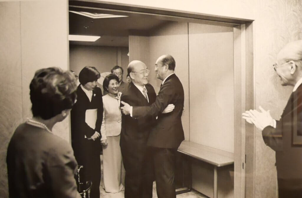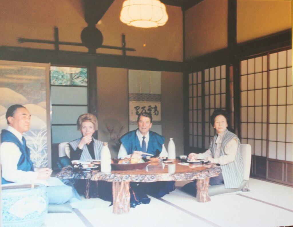 こうした友好のお膳立てが出来た11日、中曽根氏はレーガン大統領夫妻を日の出山荘に招いた。互いにちゃんちゃんこを羽織って、いろりを囲み、両夫妻共々料理に舌鼓を打ち、親交を深めた。この象徴的な関係を言い表したのが互いに「ロン・ヤス」と呼び合ったことだった。