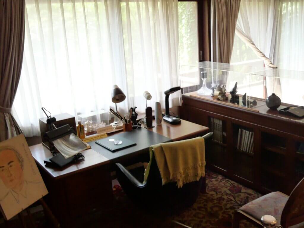別荘の建物の中で一番新しいのが平成元年(1989)に建てた書院だ。外見は洋風だが、造りは木造建築。スレート葺き。中曽根氏の首相在任が5年。昭和22年(1947)に28歳で衆議院選挙に初当選した。若手のころは「青年将校」と呼ばれ、後に原子力関連法案の議員立法も呼びかけた。首相の公選制や憲法改正にも声を上げた。自民党総裁選で小派閥ゆえに「政界の風見鶏」とも揶揄された。国会議員在職50年にわたる間、政治の舞台で共にした友人を書院に招いて労った。