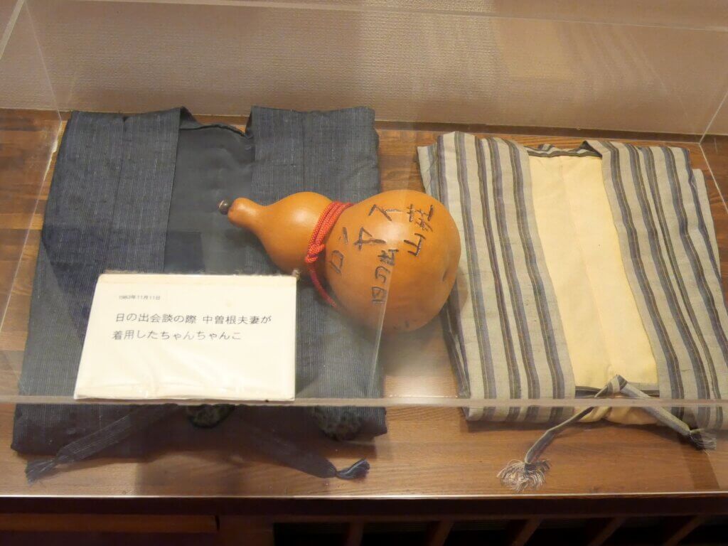 どの建物にも会談の和やかさを表す顔だったり、真剣な眼差しの中曽根氏だったりする写真が展示されている中で、書院にはダンスを踊る姿の写真があって国内では一般的に見慣れない友好ぶりが伝わるものがあった。