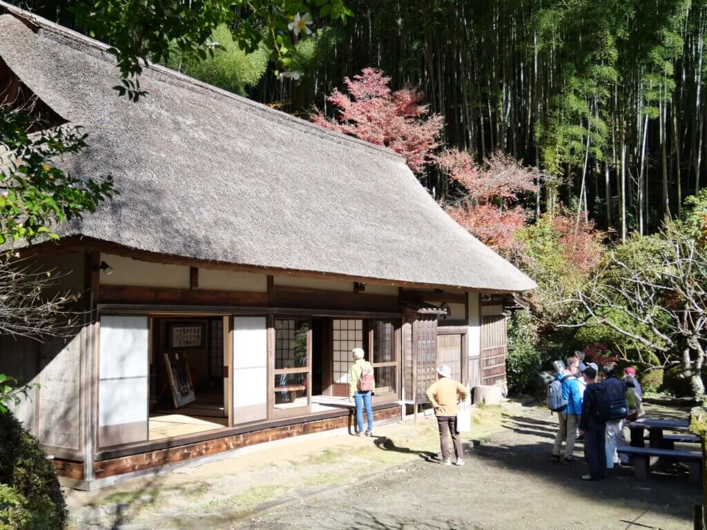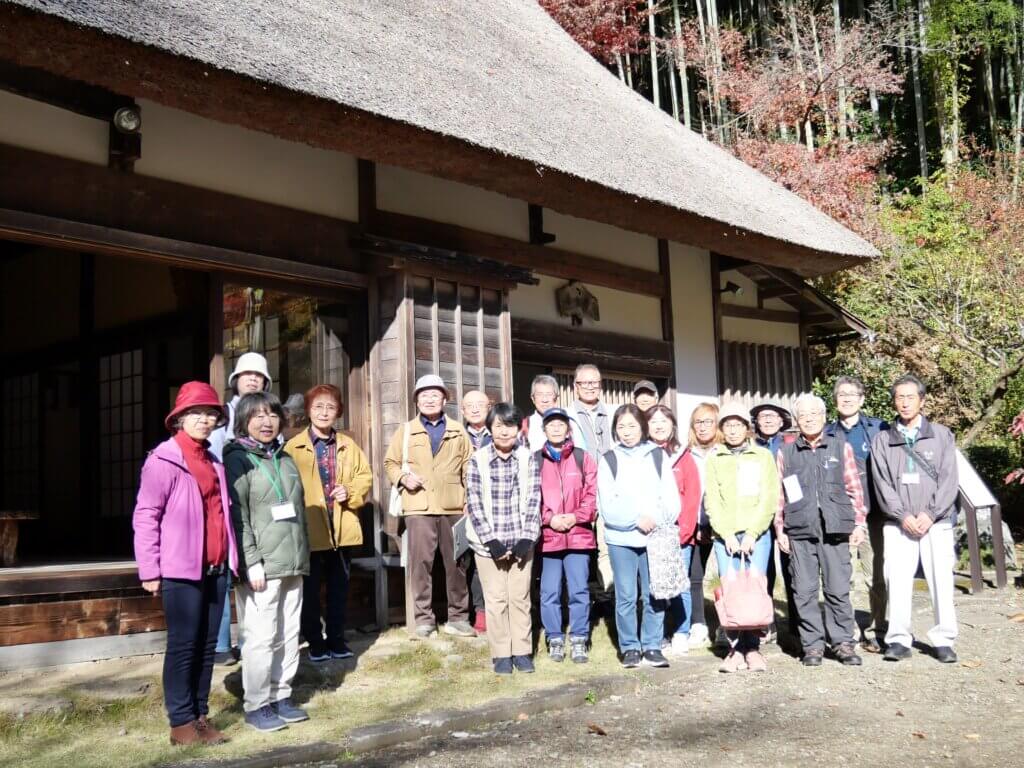 日の出町の人里離れた山間にある農家屋風の山荘から世界各国へ国際的な情報が発信された。昭和58年(1983)11月11日、第40代アメリカ合衆国大統領、ロナルド・レーガン氏が第71代内閣総理大臣・中曽根康弘氏の日の出山荘(日の出町大久野)を訪れたのだった。2人はロン、ヤスと呼び合うほどの信頼を表した。それまでに10回以上会談して築いてきた友情をさらに深めて日米関係を強化した。この翌年、大韓民国大統領の全斗煥氏、続いて平成4年(1992)に当時のソビエト連邦最後の大統領になったミハイル・ゴルバチョフ氏を山荘に招いた。それぞれの大統領は満面の笑みで歓談して信頼し合った。この山荘はいま、「中曽根康弘 ロナルド・レーガン日米首脳会談記念館」として公開されていることから多摩めぐりの一行19人は、11月26日に菊池等さんのガイドで訪ねた。